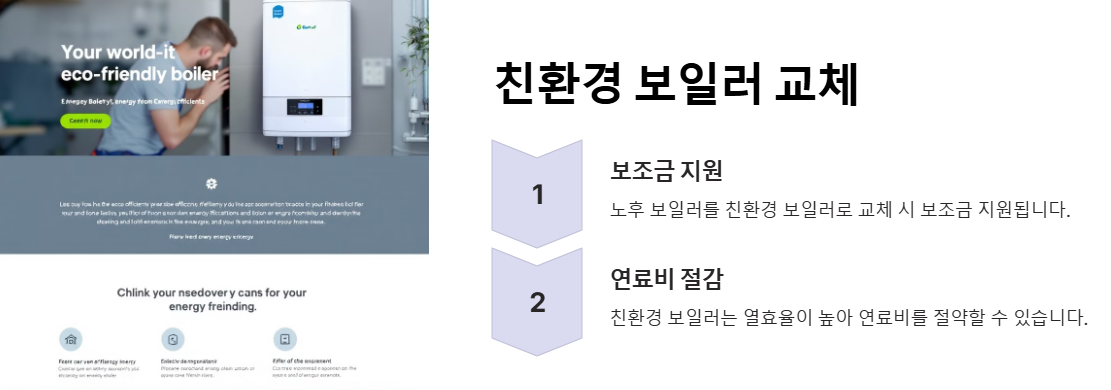오래된 보일러를 친환경 보일러로 교체하면 정부에서 보조금도 주고 난방비도 크게 절약할 수 있답니다. 일반 가구는 10만원, 저소득층은 60만원까지 지원받을 수 있어요. 특히 저소득층은 특정 제품을 선택하면 무상으로 교체할 수도 있답니다.