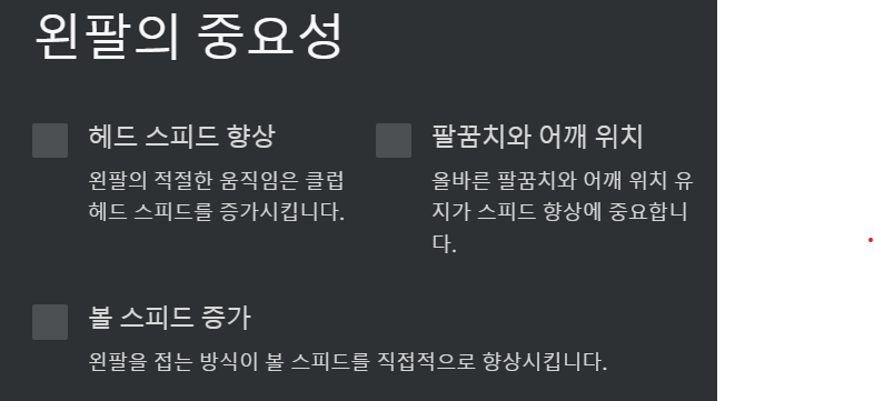 - 왼팔의 접힘은 볼 스피드 향상의 핵심 메커니즘입니다.