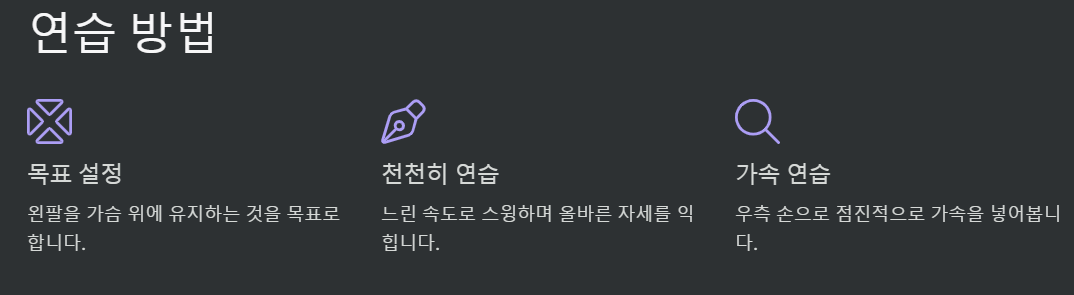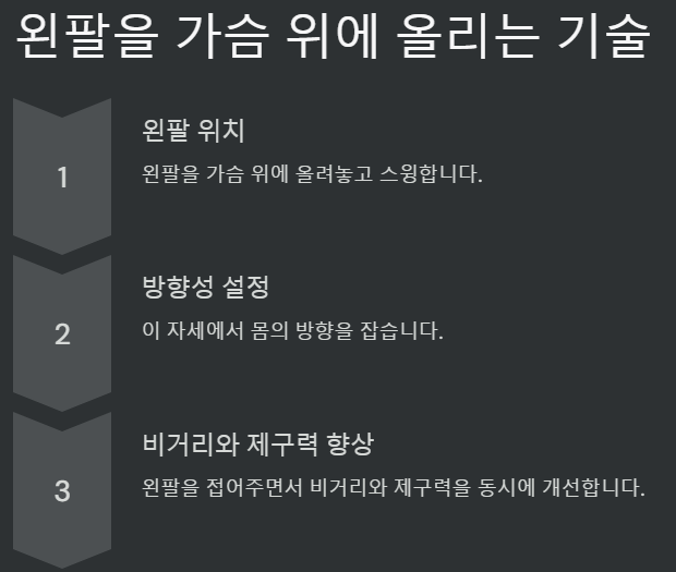 - 반복적인 연습을 통해 왼팔 움직임의 자연스러운 흐름을 체득합니다.