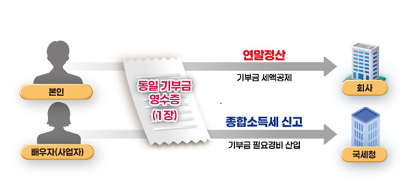 동일한 기부금영수증을 이용하여 각자 한번씩 공제받은 부부