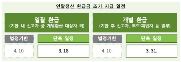 1. 환급금 조기 지급 일정