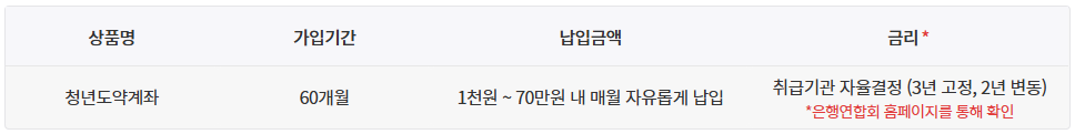 취급은행을 통틀어 1명당 1개의 계좌만 가입 가능