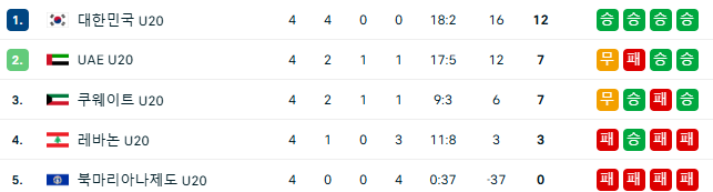 대한민국 U-20 대표팀은 조별리그에서 다음과 같은 일정을 소화할 예정입니다: