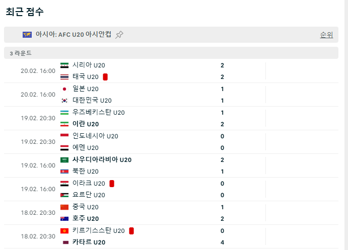 - 2월 14일 16:00 : 대한민국 vs 시리아