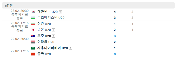 - 2월 23일 20:30 : 대한민국 vs 우즈베키스탄