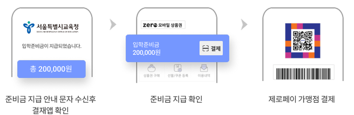 - 제로페이 모바일 포인트: 학생 또는 학부모가 제로페이 가맹점에서 모바일 포인트를 사용하여 입학 준비 물품을 직접 구매할 수 있습니다.