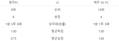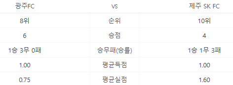 - 광주 FC vs. 제주SK FC (광주월드컵경기장) => 경기장 바로가기